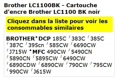 Bonjour, j'aimerai savoir à quoi correspondent les sigles des cartouches d'imprimantes! pour la mienne, j'ai des LC 1100 LC 980 LC 975 ....et comme mon imprimante ne fonctionne plus, j'en cherche une autre qui les accepte, Brother m'a dirigé sur une imprimante mais après vérification, j'ai vu que les cartouches était des LC 985....