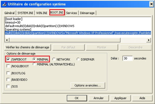Décoche le SafeBoot (dans boot-ini) s'il est coché.