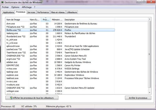 2- RAM libre. A tout moment tu peux cliquer sur CTRL+ALT+SUPPR, tu obtiens le gestionnaire des taches. En bas du as l'utilisation de l'UC et de la RAM.