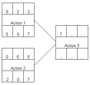 Remarque : on peut considérer que ces deux tâches forment une tâche commune, de durée 7, il est évident que la tâche suivante ne pourra pas commencer en 7 autrement qu'avec une marge à 0 pour la tâche commune, ce qui implique une marge de 0 pour chacune des sous-tâches.