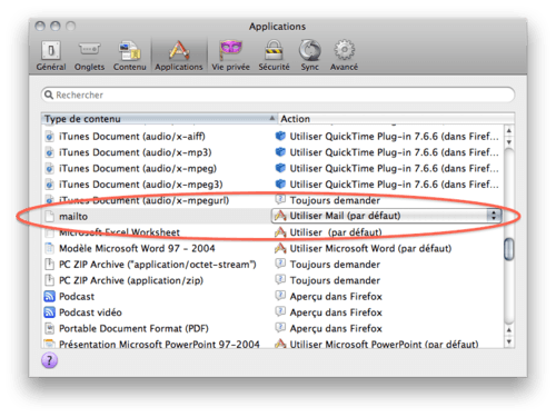 Si c'est autre chose, alors clique tout simplement sur cet autre chose et règle "mailto" sur "Utiliser Mail (par défaut)"