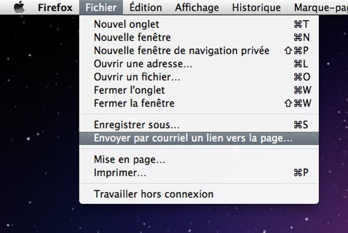 Pour cela, lance l'application Mail et ouvre le menu "Mail -> Préférences -> onglet Générales" et regarde quelle est l'application choisie dans le champ "Logiciel de courrier par défaut". Si ce n'est pas le cas, choisit "Mail" et retente l'envoi de lien par courriel depuis Firefox.