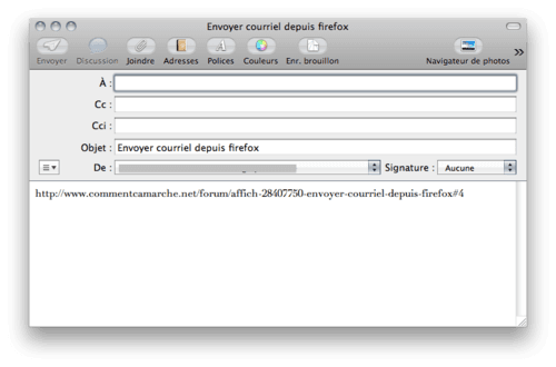 depuis firefox, si je veux envoyer un lien vers la page... j'ai une quantité innombrable d'onglets qui s'ouvre, notés "mailto?" et je suis obligée de quitter firefox pour arrêter l'hémorragie !