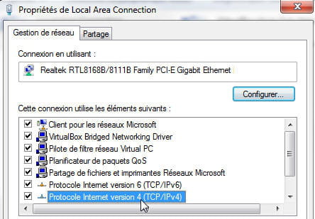 et la clic sur PROTOCOLE INTERNET VERSION 4 TCP IPv4: