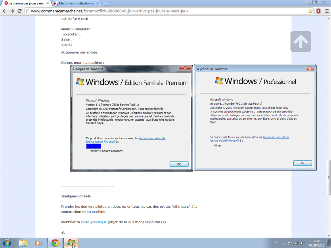 Donc il faut commencer pas installer le pilote de ta carte graphique, pour ton système Win 7 32 ou 64 bits pour pc bureau ou portable.