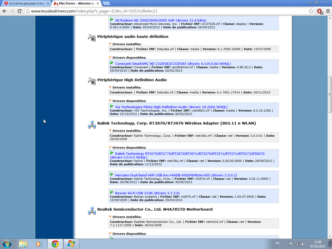 Pour les mettre à jour : https://www.touslesdrivers.com/
