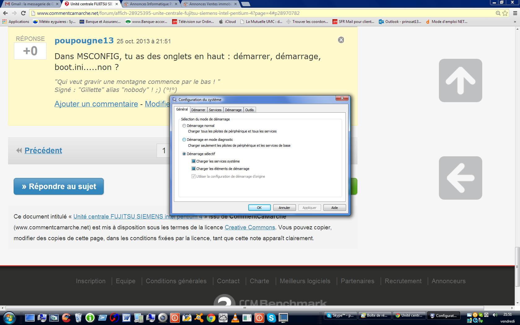 Donc je suis allé ds l'onglet "démarrage" , mais qu'est ce que tu voulais que je modifie là dedans? j'ai tapé OK puis redémarrer l'ordi!