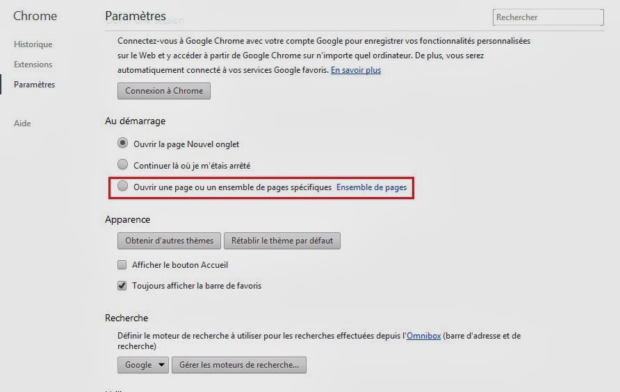 2-Choisissez ouvrir une page ou ensemble de pages spécifiques en cliquant sur le texte en bleu (Ensemble de pages)