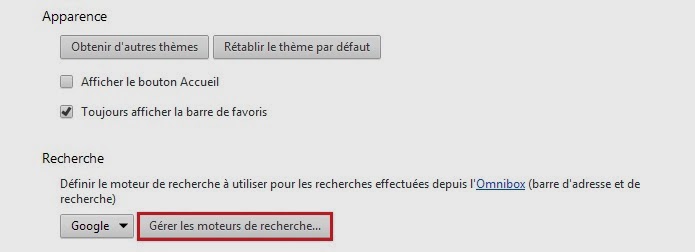 4-Dans la même interface, rubrique de Recherche cliquez sur Gérer les moteurs de recherche...