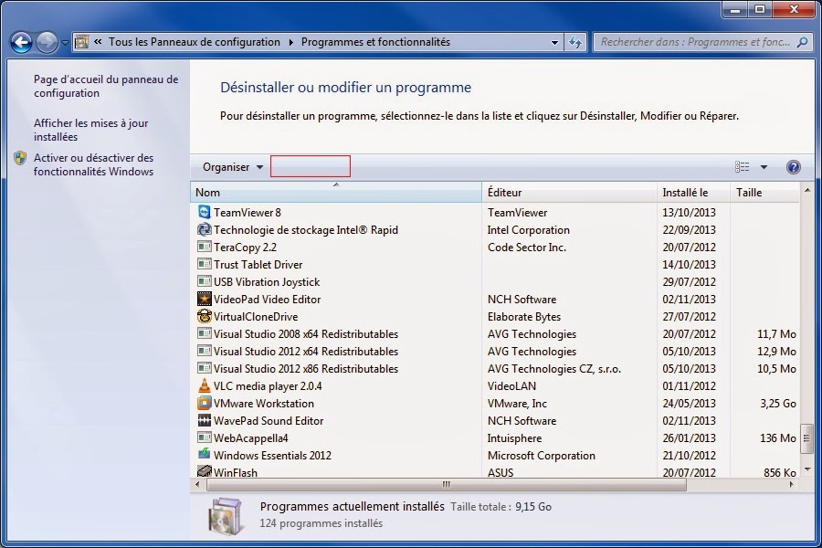 1-Ouvrez menu démarrer--> Panneau de configuration--> Programmes et fonctionalités.