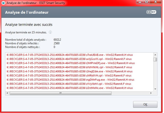 Impossible de supprimer Win32/Ramnit.F - Win32/Ramnit.H
