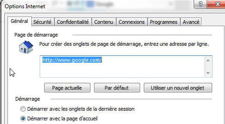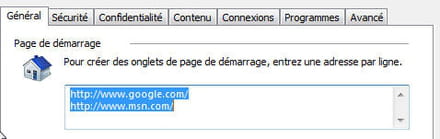 Je dois entrer manuellement l'adresse de Google et de MSN dans option internet.