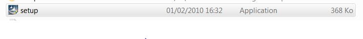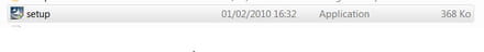 Faites Démarrer, Ordinateur, Téléchargements, vous allez trouver un fichier se nommant R261570 (dossier jaune ouvert), cliquez droit dessus et sélectionner Ouvrir, double cliquez sur la ligne setup comme l'indique la figure suivante pour débuter l'installation et suivez les instructions.