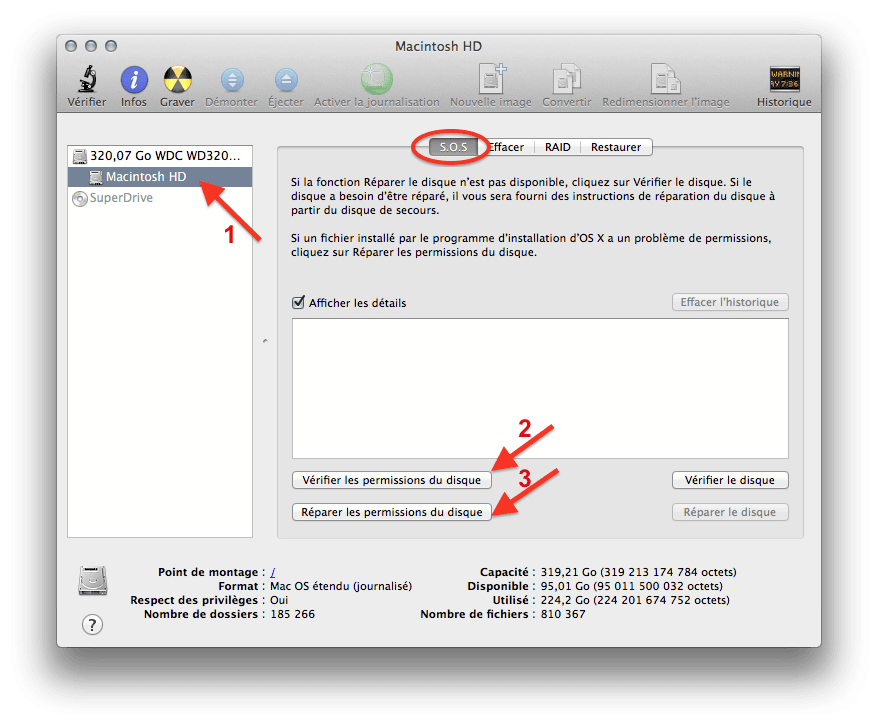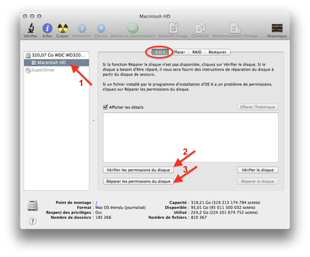 Sélectionner dans la colonne de gauche le disque dur du Mac (l'icône indiquant la taille du disque dur interne)