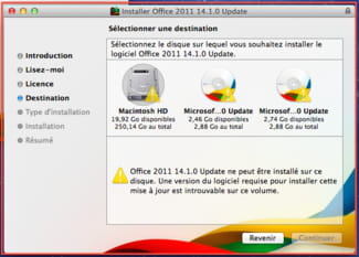 "le disque ne peut pas installer office 2011 car une version du logiciel est requise pour installer, cette mise a jour est introuvable."