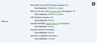 Mon premier screen c'est tout ce qui est reseau quand je fais un scan ma-config.com
