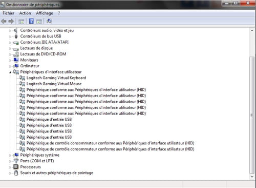 D'autre part, j'ai pu remarquer que dans le gestionnaire de périphériques, au moment où la souris se fige, le gestionnaire se "recharge". Il disparaît une fraction de seconde et réapparaît. J'ai déjà eu des lignes comme "Périphérique conforme aux Périphériques d'interface utilisateur (HID)" qui disparaissaient puis réapparaissaient. J'ai remarqué que c'est dans cette partie du gestionnaire de périphériques qu'il y avait des choses étranges.