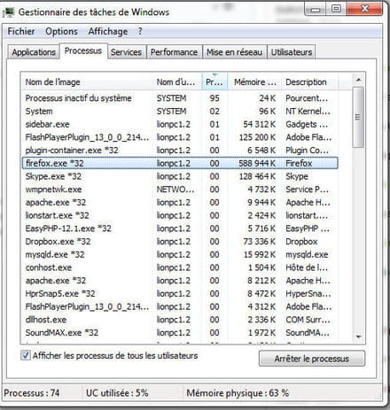 Voilà pour la capture d'écran du gestionnaire de tâche