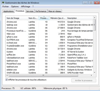 Il y a chrome, taskgr.exe, et csrss.exe, enfin j'espère que ça répond à ta question, comme je ne suis pas vraiment douée pour l'informatique