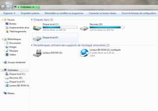 - "Disque Local (F:)" présent dans "Ordinateur et "Périphériques USB"