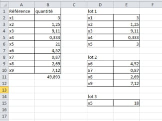 Je dispose d'une liste de produits avec leur référence et leur quantité. Je dois ensuite constituer des lots ayant une taille maximale.