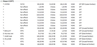 Copie d'écran des partitions du SSD