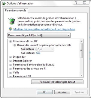 et j'ai déjà paramètre les option d'alimentation que l'on vois sur l'image jointe