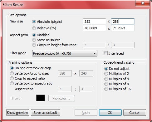 VirtualDub --> Filtre Resize, voir image (clique dessus pour l'agrandir):