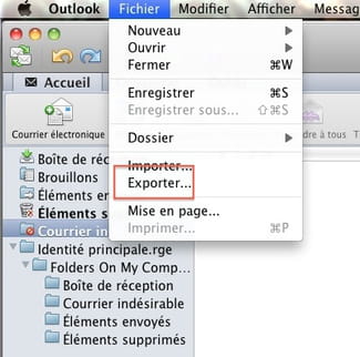 Vois-tu le chemin pour accéder à la fonction "Fichier/exporter" quand tu ouvres Outlook ?