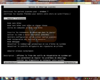 Alors moi j'ai comme toi sauf que je n'ai pas réparer l'ordinateur, sa commence par mode sans échec, de plus c'est écris en anglais