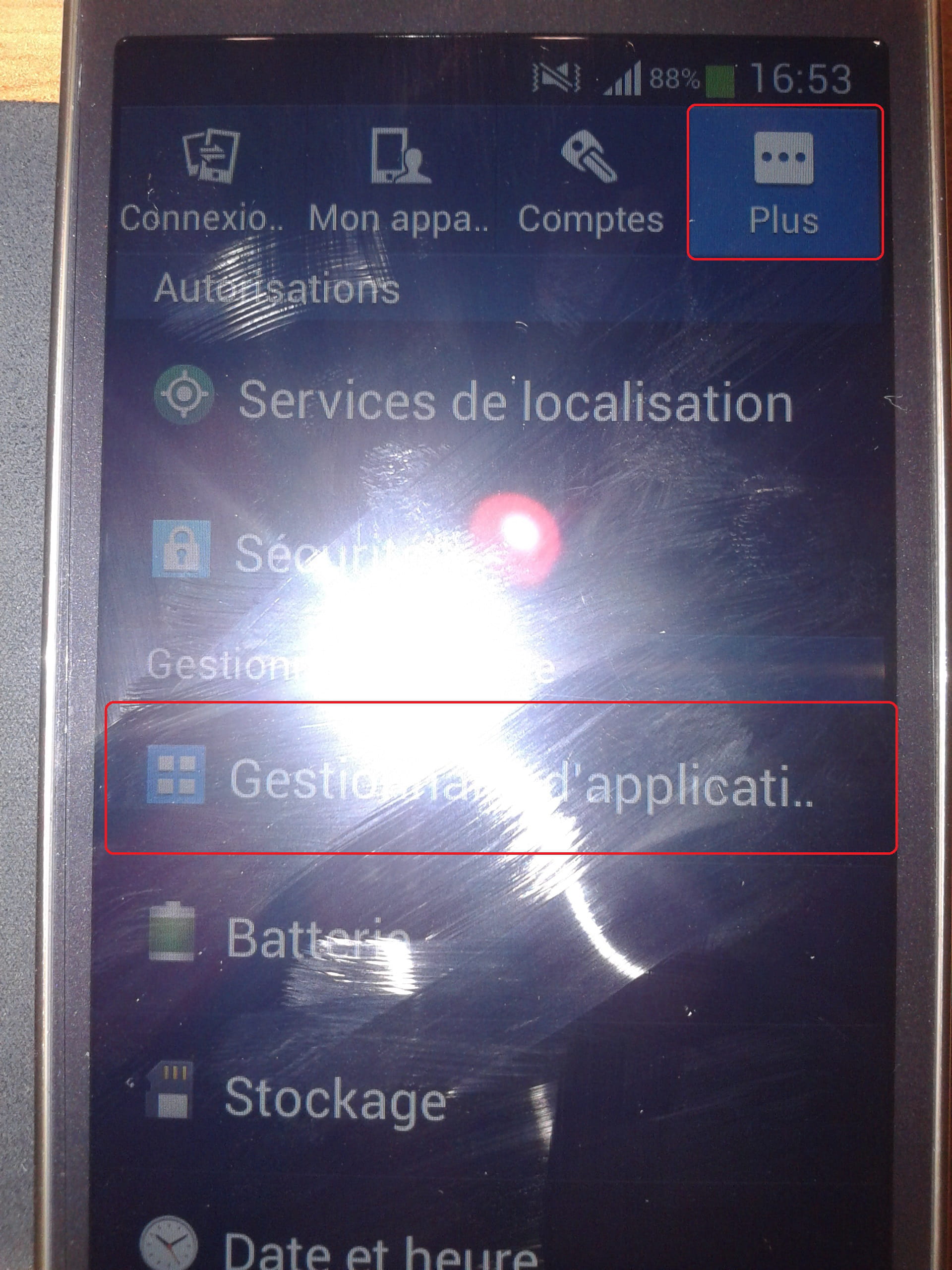 depuis ta page d'accueil, clique sur applis, paramètres, plus (pour afficher tous les paramètres), gestionnaire d'applications,
