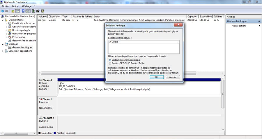 Bien entendu, si Windows ne peut pas fonctionner correctement, il faudra connecter ce disque à un PC valide, par l'intermédiaire d'un boîtier ou d'un adaptateur USB, ou mieux, directement à la carte-mère.