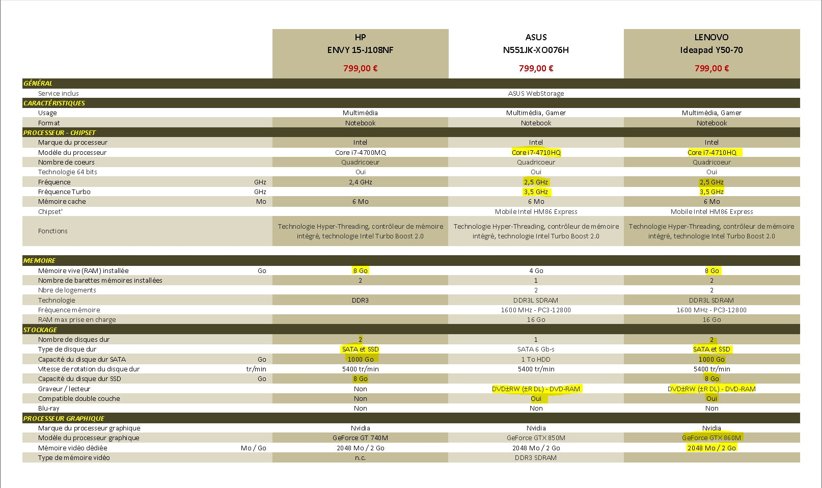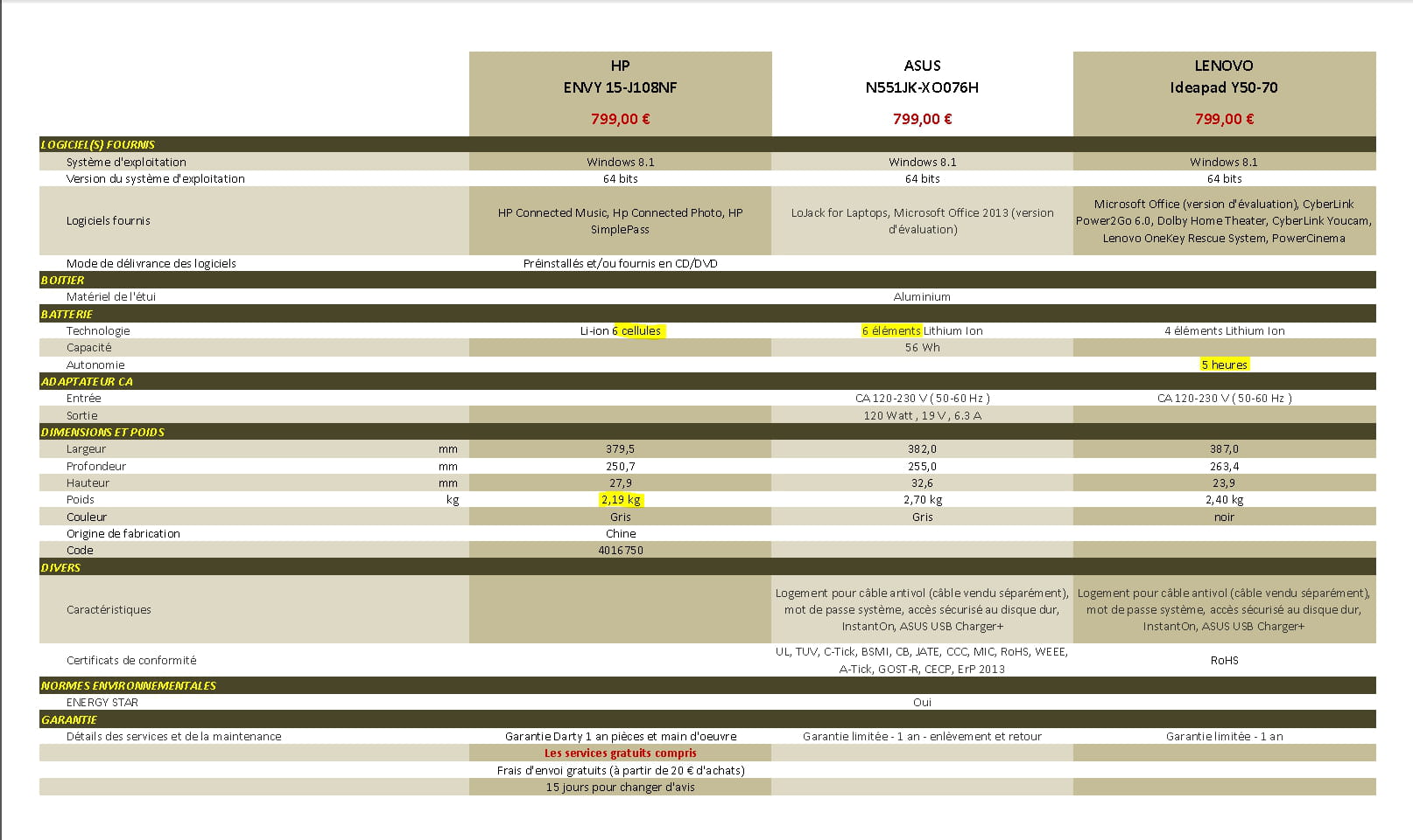 Voici le comparatif entre HP / ASUS / LENOVO