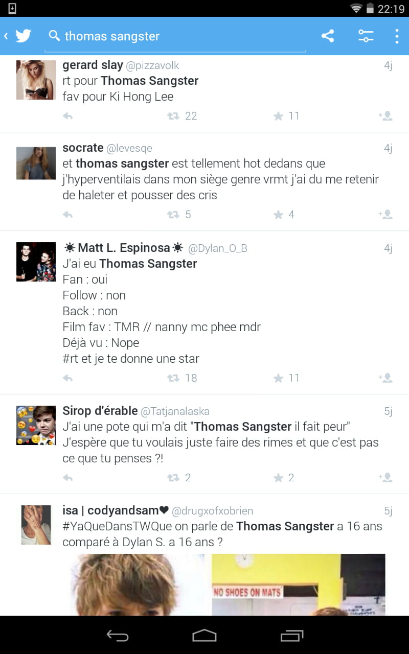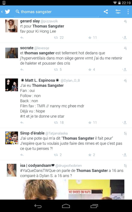 J'ai pu voir que lorsque l'on tape le nom d'une star, on tombe sur une page entièrement dédiée a des tweets sur la star, je mettrai un screen de mon écran :)