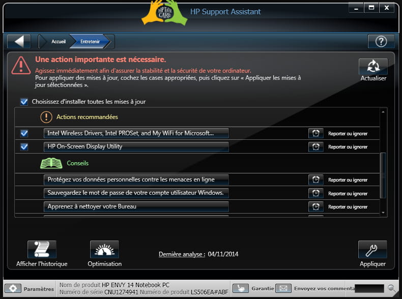 mon PC est assez lent, du coup je ne sais vraiment pas top quoi faire de base. J'ai nettoyé, defragmenté, scanné.. Verifier si des programmes n'avaient pas été installé de par les sites de stream.. Rien, du coup j'ai voulu voir les mises à jour hp.