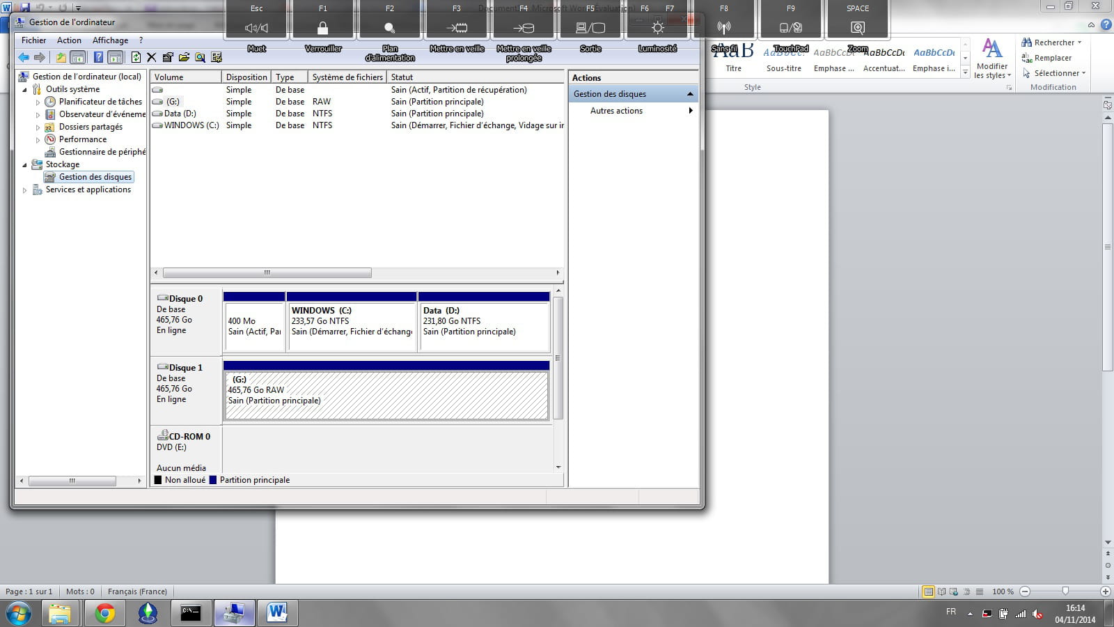 Voilà mon problème, j'étais en train de travailler sur un dossier sur mon DD externe Toshiba et je l'ai débranché sans fermé le dossier en question. Et depuis lorsque je le branche mon ordi ne l'ouvre plus automatiquement, qd je vais sur ordinateur il est représenté par Disque local (G:), quand je clique dessus ca me met qu'il est pas accessible, lorsque je vais dans panneau de config à Disques là le Toshiba est noté normalement. Et quand je le débranche il me dit de le formater ce que je veux absolument pas faire. Par contre lorsque je le branche à ma free sur ma télé il y a tous mes dossiers.