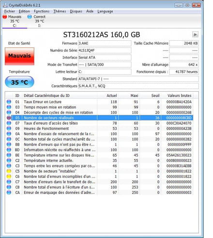 Depuis quelque mois, au demarrage, smart me signale que mon dd principal est defectueux, "status bad, backup and replace it. Press F1 to resume". Jusque- là, il tient le coup, je fais une sauvegarde tout les 15 jours. J'ai fait une analyse HD tune et Crystal disk Info, et j'aurais besoin de vos lumieres pour analyser tout ça: