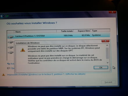 je crois que je suis déjà en mode legacy, est l'erreur avec Windows n'est arrivé qu'une fois en faite, j'ai principalement une erreur qui m'empêche de formater mon disque dur