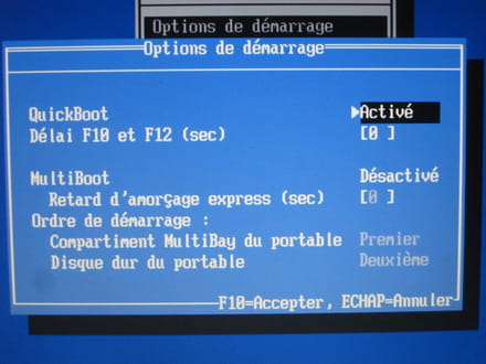 J'avais activé "multiBoot" aussi, et j'avais laissé "compartiment multiBay du portable" en premier.