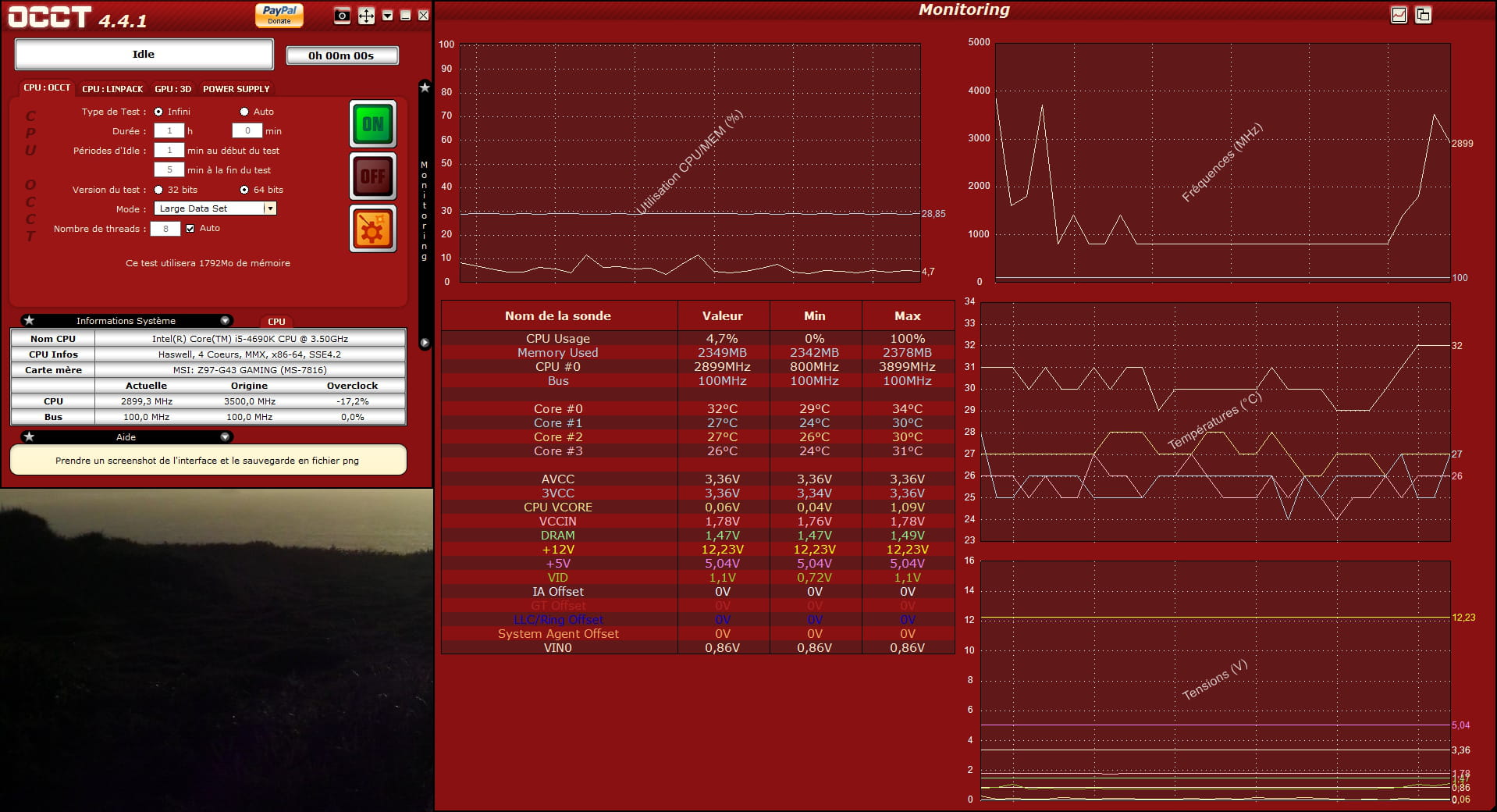 Et voici une capture d'occt pour les tensions qui je pense sont normales aussi.