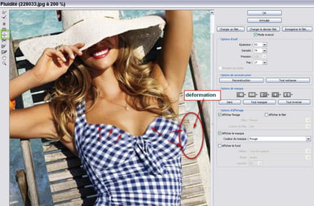 il faudra détourer la zone à dilater ou à contracter - voire détourer le sujet tout entier - pour éviter ce genre de déformation: