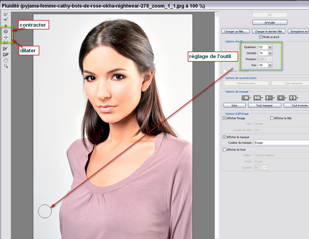 et tu appliques l'outil sur les zones à dilater, dans le sens de la dilatation