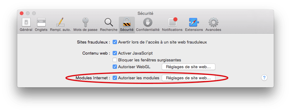 - Modification les préférences de sécurité safari