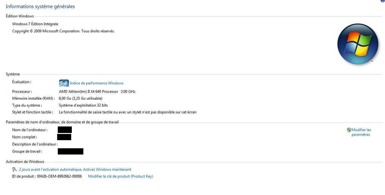 Comme vous le voyez je n'ai que 3,25 Go de RAM alors que je peux atteindre jusqu'à 8 Go !