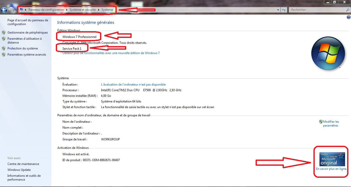 est ce que tu peux me faire une impression d'ecran de ton bureau ou le panneau de configuration, système ?