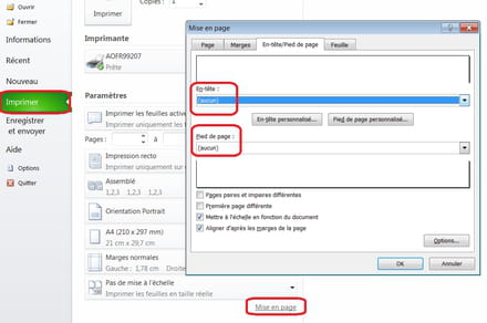 Entete et pied de page sur excel
