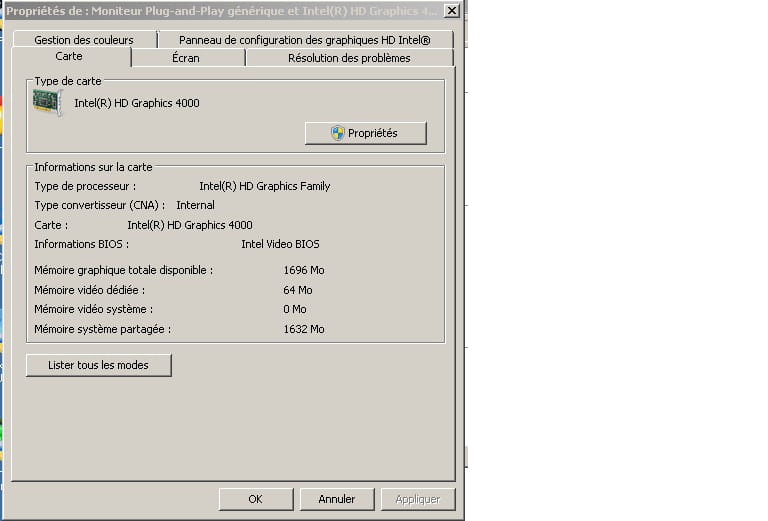 Intel graphics hd 4000 1024mo