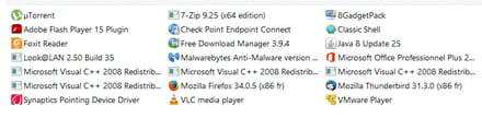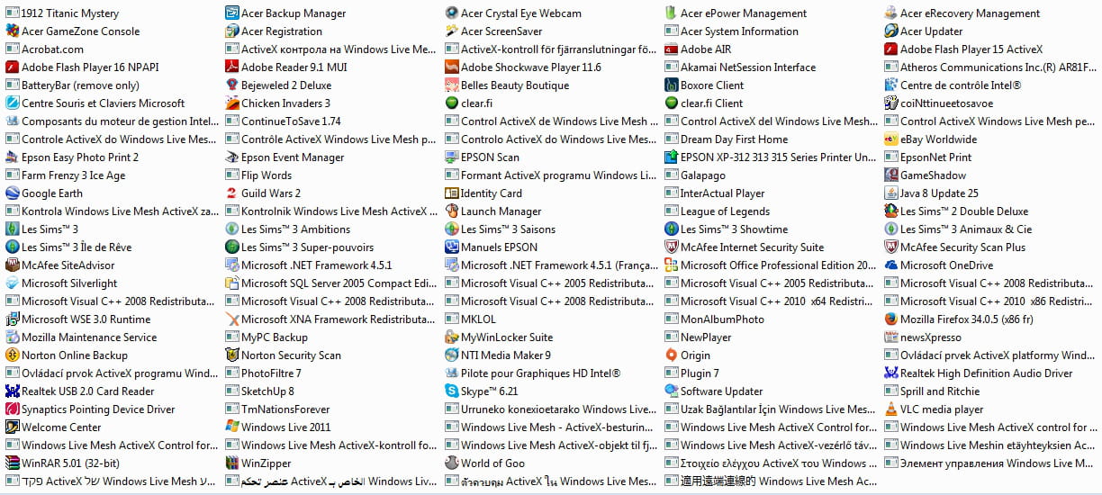 J'ai donc fais un screen de mes programmes, en espérant que vous puissiez m'indiquer lesquels je peux supprimer sans problèmes, mais qui ne gênent pas, ou ceux qu'il faut que je supprime ABSOLUMENT...
