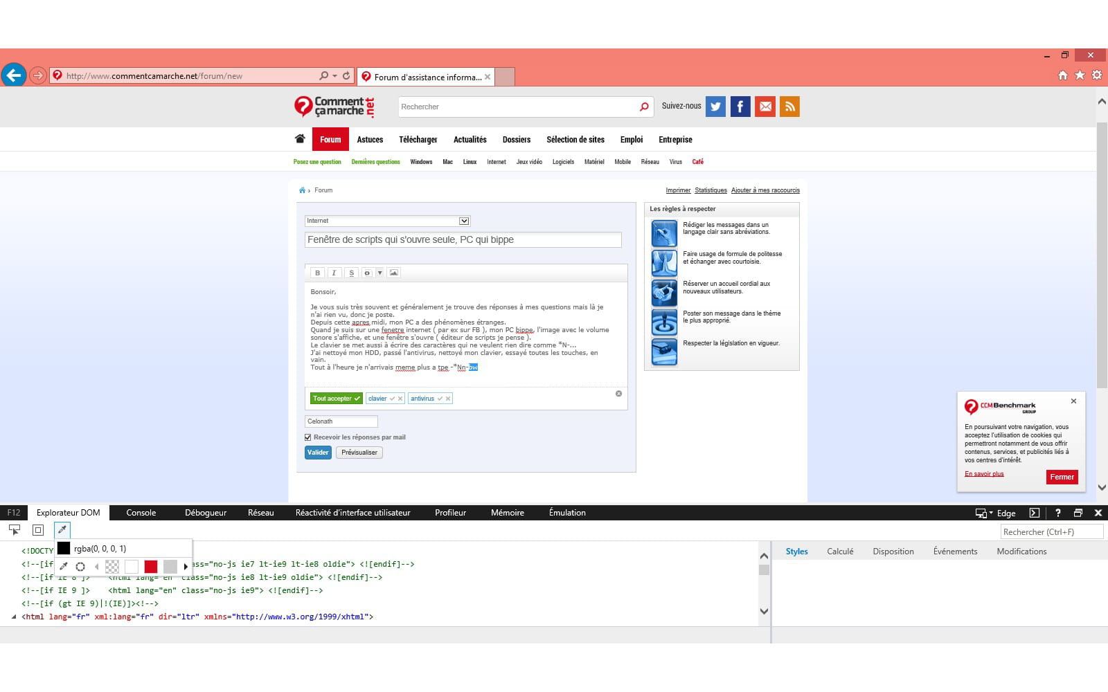 Quand je suis sur une fenetre internet ( par ex sur FB ), mon PC bippe, l'image avec le volume sonore s'affiche, et une fenêtre s'ouvre ( éditeur de scripts je pense ).