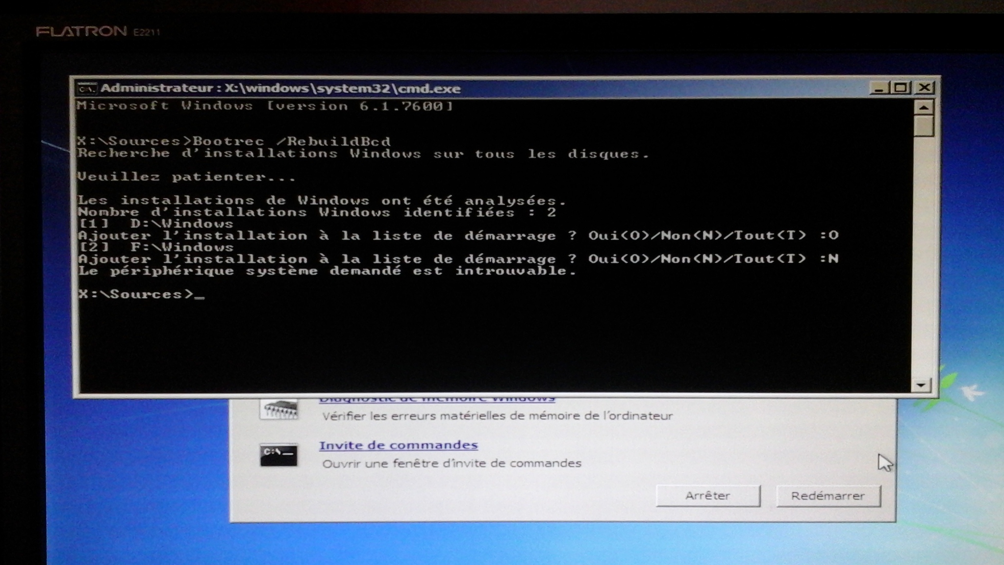 - Récupération système : impossible de réparer le système de démar